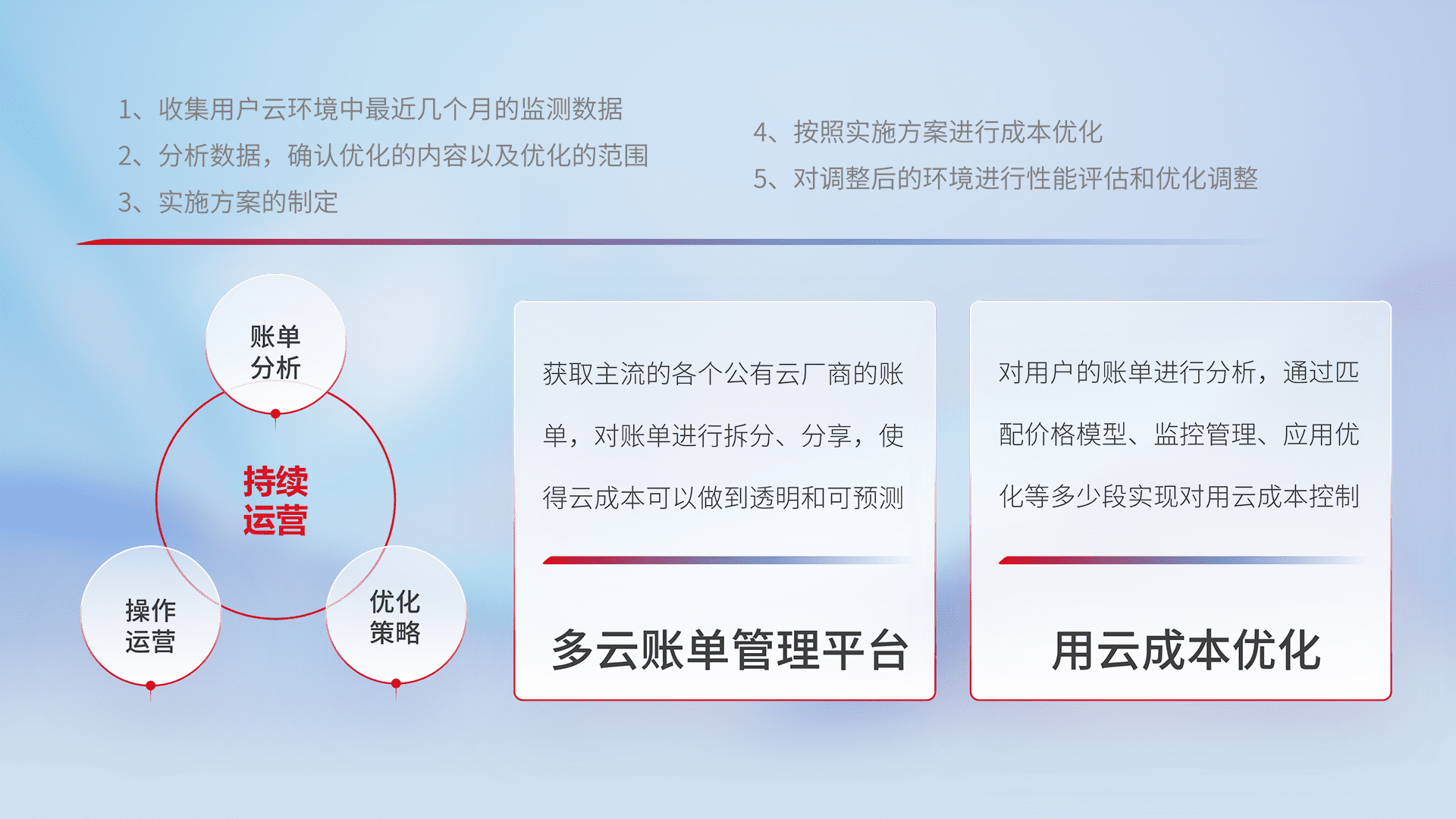 运用智能化工具分析云资源,,,,提供日常费用可视化工具,,自动账单拆分,,,成本优化云上费用,,,降本增效。。